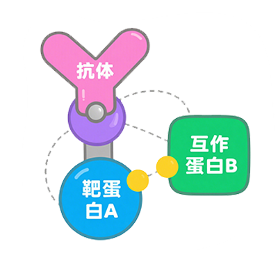 蛋白质免疫共沉淀(Co-Immunoprecipitation, Co-IP)是一种用于研究蛋白质-蛋白质相互作用的技术。通过使用特异性抗体将目标蛋白质从复杂的蛋白质混合物中提取出来,同时将与其相互作用的蛋白质一起沉淀下来。随后,通过Western Blot等方法检测这些共沉淀的蛋白质。Co-IP广泛应用于:①蛋白质相互作用网络研究;②药物靶点验证;③蛋白质复合物研究。